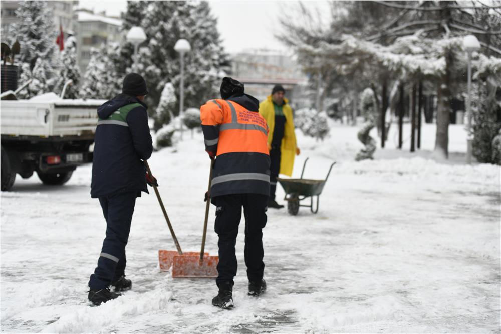 Park ve Bahçeler Daire Başkanlığı ekipleri ise sabahın ilk saatlerinden itibaren kaldırımlar, parklar ve yürüyüş yollarında karla mücadele çalışmalarını yürütüyor. 72 kişilik ekip, yaya güvenliğini sağlamak amacıyla kaldırımları temizleyip tuzlarken, park alanlarında ağaçların üzerindeki kar birikintilerini temizleyerek olası risklerin önüne geçiyor.