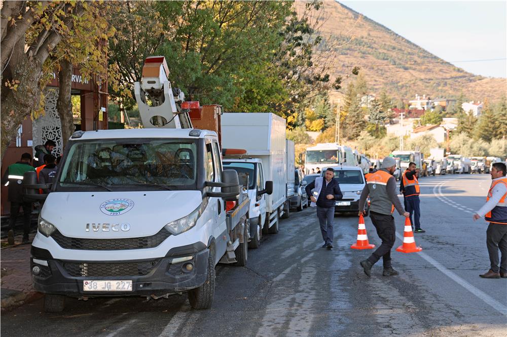 Çalışmaları yerinde başlatan Talas Belediye Başkanı Mustafa Yalçın, alandaki personelle tek tek tokalaşarak yakından ilgilendi.
